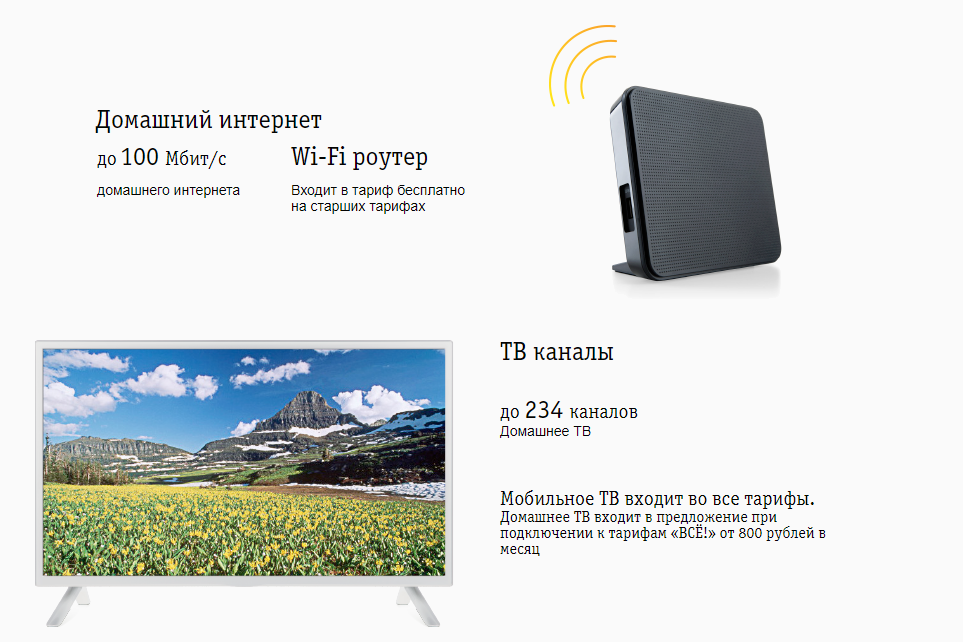 Самое большое достоинство в том, что если раньше вы платили, скажем, 600 рублей в месяц — 400 минут (для Москвы) или 1200 минут (для многих регионов), 500 SMS и от 12 ГБ мобильного интернет-трафика (это тариф «Все за 600»), то теперь за эти же 600 рублей вы получите все то же самое плюс безлимитный домашний интернет на скорости от 40 Мбит/сек (в зависимости от региона) и 25 каналов мобильного ТВ.